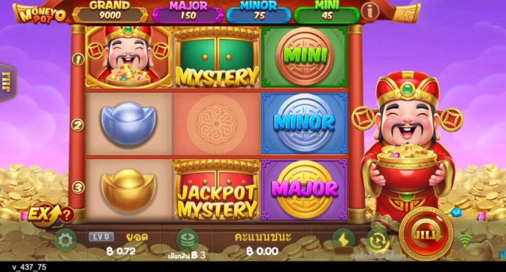 Money Pot คือสล็อต 3×3 จากค่าย JILI ที่มาพร้อมธีมจีนมงคลและตัวละครหลักอย่างเทพไฉ่ซิงเอี้ย สัญลักษณ์เด่นคือเหรียญ Yuanbao ทั้งทองแดง เงิน และทอง ซึ่งให้ตัวคูณต่างกัน ช่วยสะสมรางวัลได้ต่อเนื่องทุกสปิน สามารถทดลองเล่นสล็อต jili Money Pot ได้ แม้รูปแบบเกมจะเรียบง่าย แต่มีความลึกด้วยระบบเก็บเหรียญ ฟีเจอร์สุ่มรางวัล และโอกาสแตกบ่อย ทำให้ทุกการหมุนเต็มไปด้วยจังหวะลุ้นที่ไม่น่าเบื่อเลยครับ